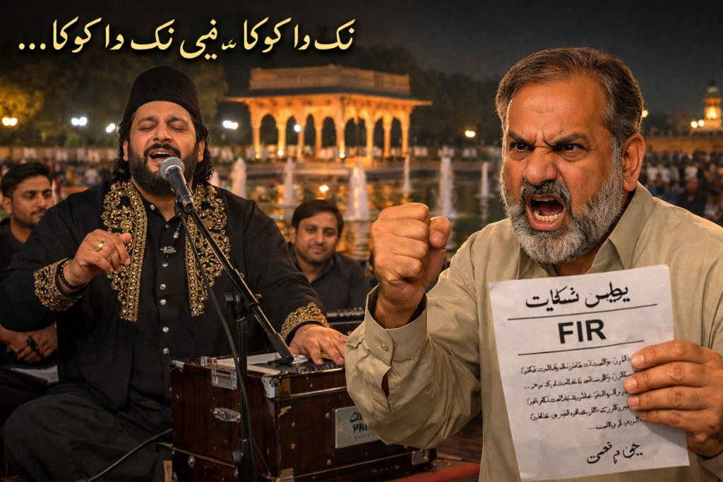 What began as a peaceful Saturday evening cultural show at Shalimar Gardens reportedly escalated into a matter of grave public concern after a qawwal dared to sing the evergreen Punjabi hit “Nak Da Koka.”
